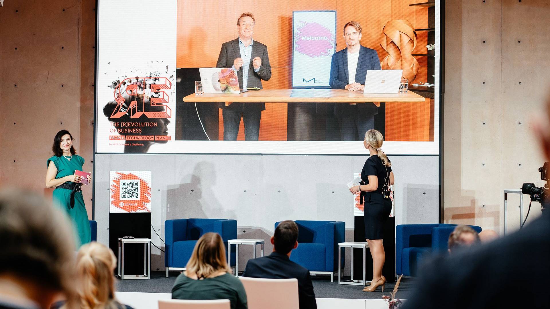 Den Meet Germany Summit Berlin verfolgten die Teilnehmer vor Ort in der Axica und vor Bildschirmen aus dem Büro oder Homeoffice. Foto: Meet Germany