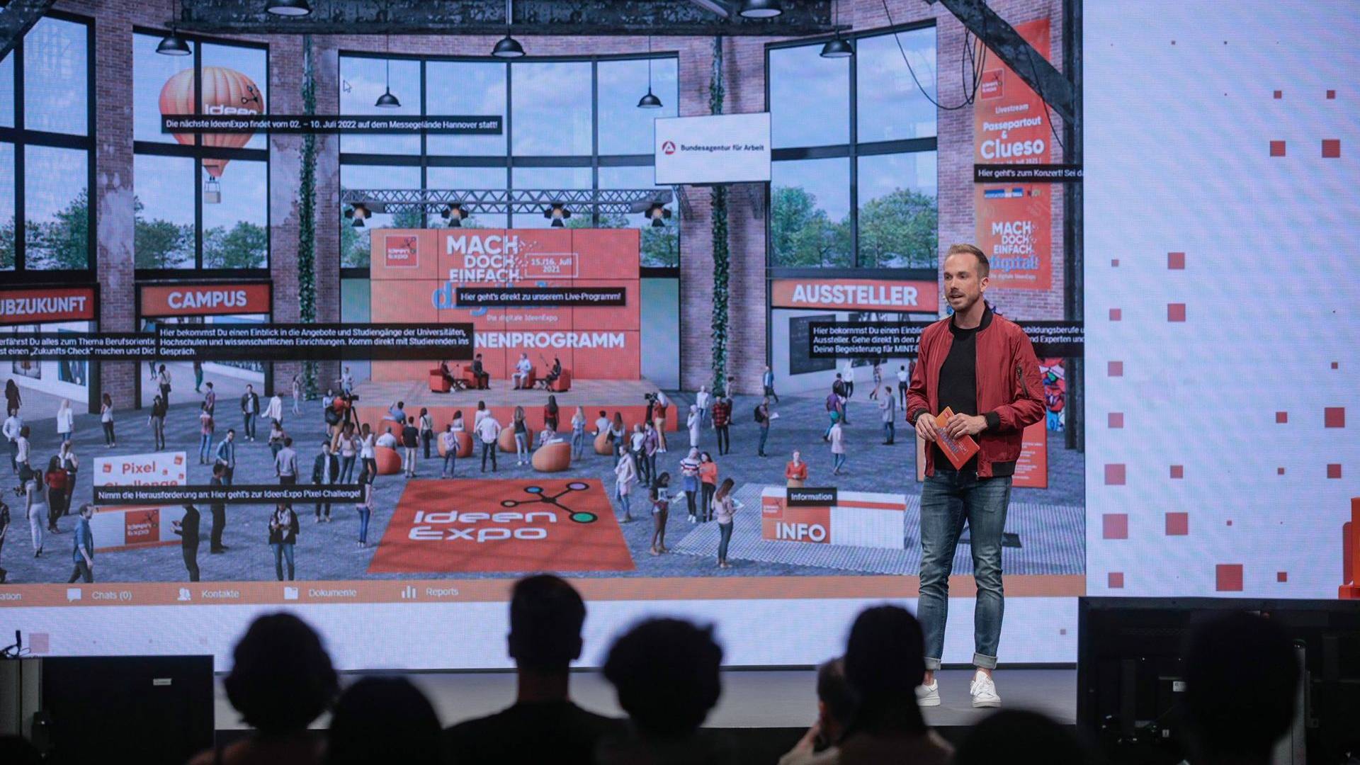 Die IdeenExpo ist eine Veranstaltung, die junge Menschen für Naturwissenschaften und Technik begeistern will. Sie wurde 2007 als gemeinsame Initiative von Politik und Wirtschaft gegründet. Auf dieser stellen Unternehmen, Hochschulen und Bildungseinrichtungen auf dem Messegelände Hannover alle zwei Jahre die Innovationen in den MINT-Berufsfeldern vor. Die IdeenExpo gilt als Europas größtes Jugend-Event seiner Art und wurde konzeptionell und organisatorisch von den Impulspiloten begleitet. Die IdeenExpo 2021 wurde erstmals als hybride Veranstaltung realisiert. Vor Ort nahmen an zwei Tagen circa 600 Schüler teil, während der Veranstalter online 70.000 Zuschaltungen zählte. Das spiegelt auch schon den enormen Vorteil des hybriden Events wider: Sowohl Schüler aus Niedersachsen als auch aus ganz Deutschland konnten an der hybriden IdeenExpo 2021 teilnehmen. Eine enorme Vergrößerung der Reichweite. Die normalerweise als „Mitmach-Event“ bekannte IdeenExpo brauchte durch die Verlagerung ins Internet ein neues Konzept. Das bedeutete, dass das Programm extrem kurzweilig und spannend gestaltet werden musste. So wurden konsequenterweise nie mehr als zwei Aussteller nacheinander vorgestellt, anschließend stets ein Entertainment-Highlight eingebaut sowie kein Slot länger als zehn Minuten gehalten. Klassische Vorträge waren tabu, stattdessen konnten die Jugendlichen Interviews mit Auszubildenden verfolgen. Außerdem berücksichtigte der Veranstalter, dass die jugendlichen Zuschauer kaum den Stream über mehrere Stunden verfolgen würden, und setzte daher nur solche Umfragen und Interaktionen ein, die losgelöst von vorangegangenen Sessions und Inhalten beantwortet werden konnten. Beide Schülergruppen konnten sich mit ihrem Smartphone aktiv am Live-Chat oder über das Abstimmungstool Mentimeter beteiligen.