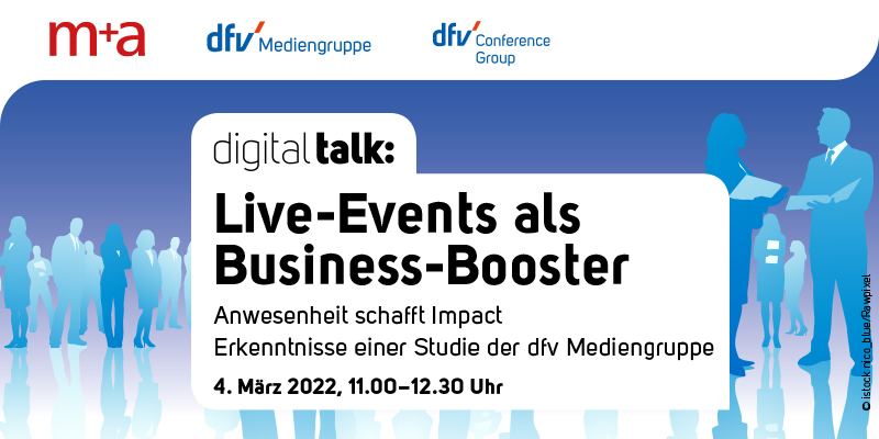 Was genau macht den Unterschied zwischen persönlichen und digitalen Treffen aus? Und wie lässt sich dies wissenschaftlich erläutern? In 90 min präsentiert Ihnen dieser digital talk von m+a die Ergebnisse der Studie „B2B-Präsenz-Veranstaltungen – Relevanz, Bedeutung, Perspektiven“ der dfv Mediengruppe und Sie erhalten als Teilnehmer des digital talks exklusiv das dazugehörige Whitepaper.