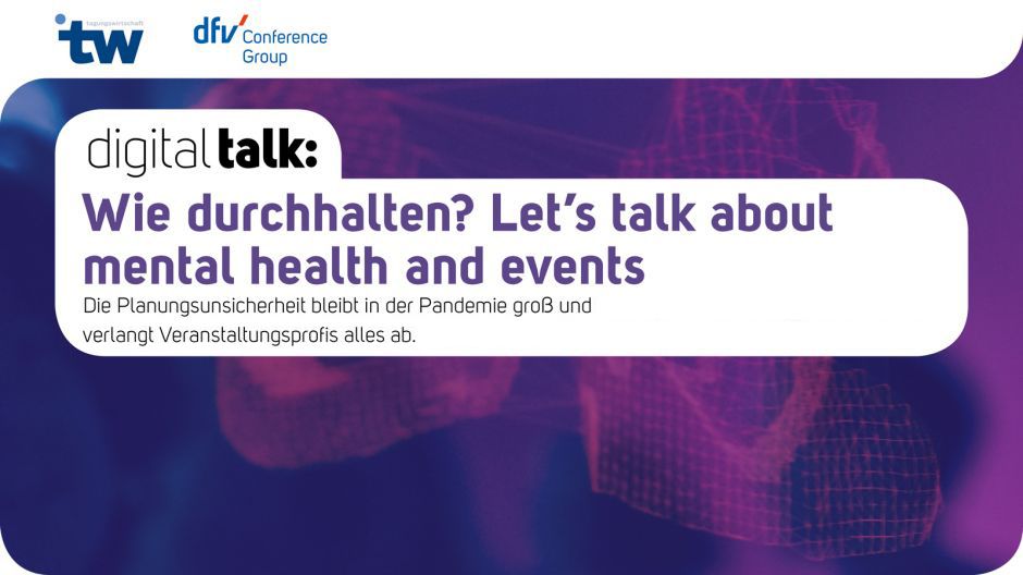 Die Planungsunsicherheit bleibt in der Pandemie groß und verlangt Eventprofessionals alles ab. Für viele heißt das: Kurzarbeit, berufliche Unsicherheit, Existenzängste. Was das mit der mentalen Gesundheit macht, lässt sich nur erahnen. Wir wollen darüber sprechen. Bei unserem Digital Talk „Wie durchhalten? Let’s talk about mental health and events“ widmen wir uns der mentalen Gesundheit.