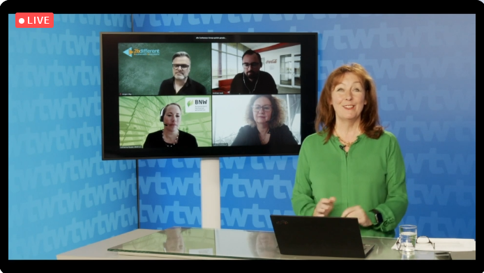 Am 27. Oktober 2021 fand der Digital Talk „Sustainable Events – So kommen wir ins Tun“ im neuen Studio der dfv Mediengruppe statt. Das kurzweilige Forman hat einen Einblick gegeben, wie wir Events nachhaltiger gestalten können und warum wir die Verantwortung tragen, dies auch zu tun. Speakerinnen und Speaker waren: Dr. Katharina Reuter, Geschäftsführerin Bundesverband Nachhaltige Wirtschaft Cathrin Mühlbauer, Director Key Account Management Axica Jürgen May, Geschäftsführer 2bdifferent Andreas Laub, Head of Partnerships & Asset Management CCEP Deutschland