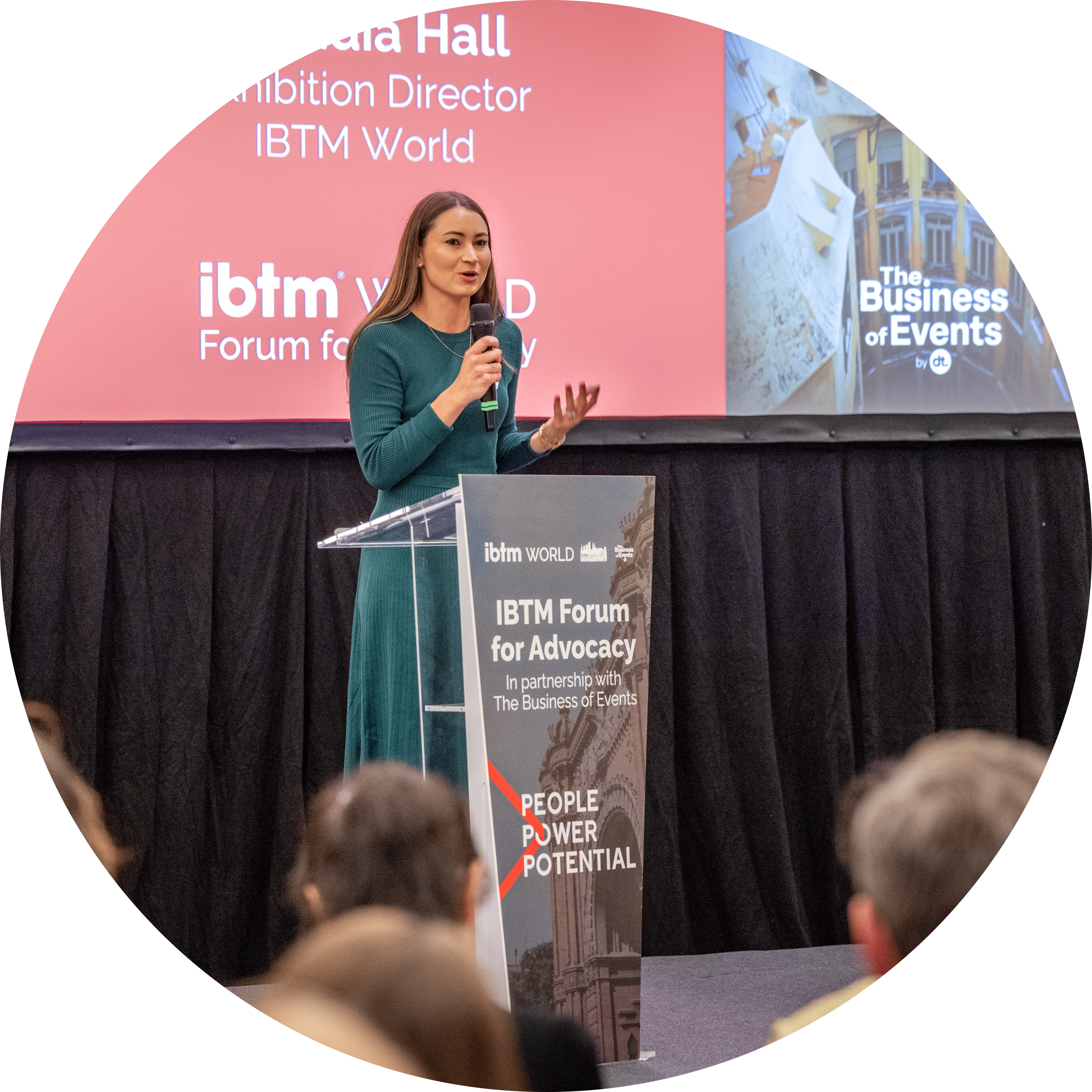 Claudia Hall, Direktorin der IBTM World, beim IBTM Forum for Advocacy 2024. Foto: IBTM World