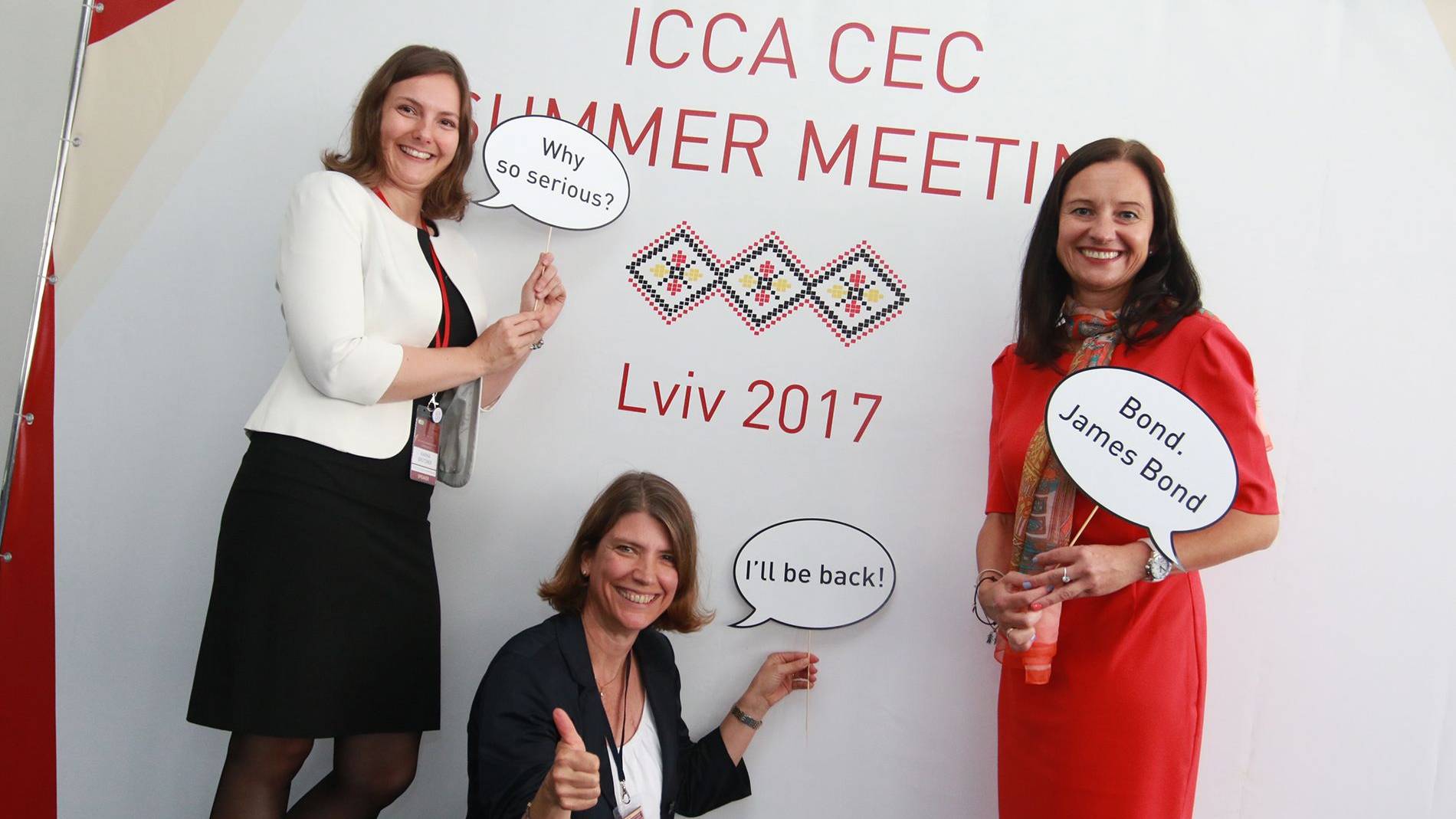ICCA CEC Summer Meeting 2017 in Lviv, Ukraine. V. l.: Karina Grützner, Jutta Heinrich, Leiterin des Frankfurt Convention Bureau, und Anna Górska aus Polen, International Meetings and Events Consultant bei HelmsBriscoe Foto: ICCA CEC