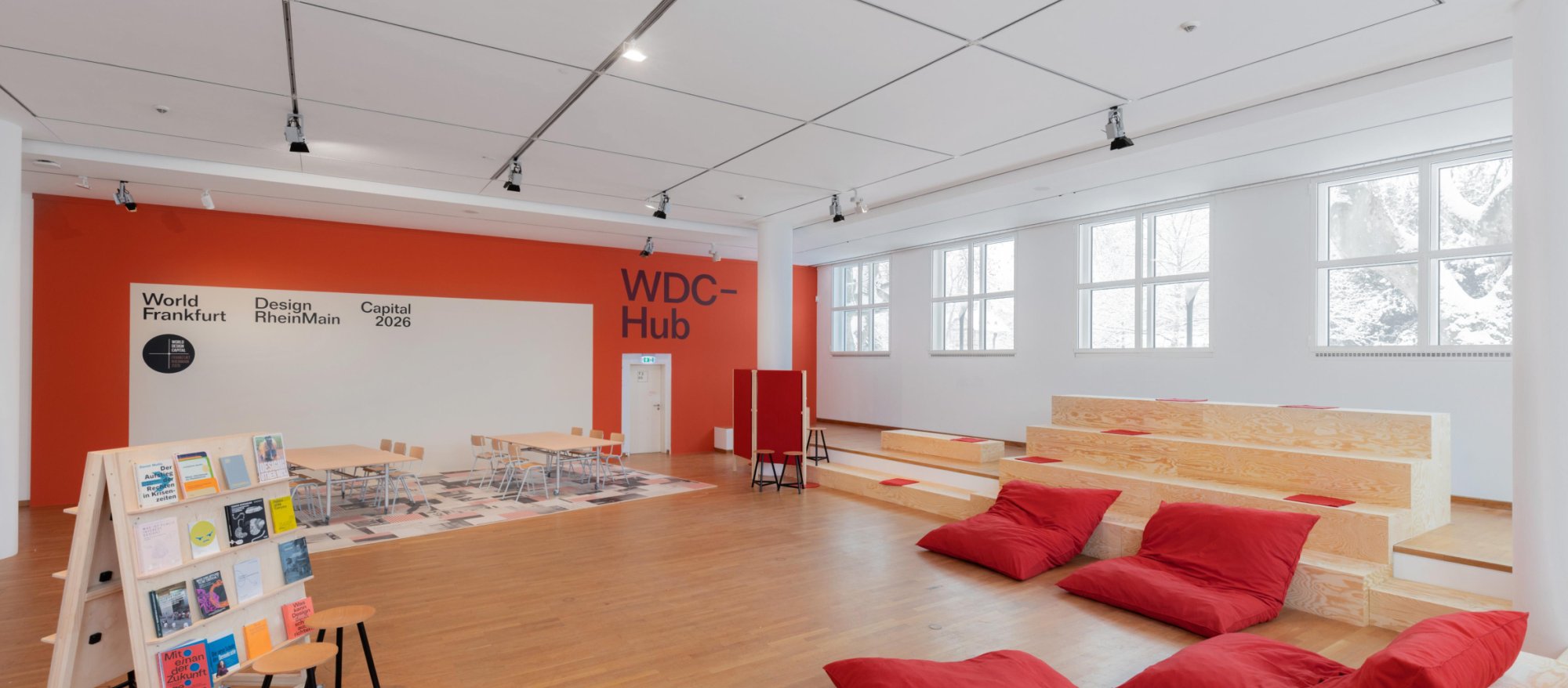 Ganzjähriger Treffpunkt für Design und Dialog: Der WDC Hub im Museum Angewandte Kunst dient 2026 als zentrale Anlaufstelle der World Design Capital Frankfurt RheinMain – offen für Ausstellungen, Workshops, Austauschformate und als flexibel nutzbarer Raum für Begegnung und Beteiligung. Foto: Ben Kuhlmann