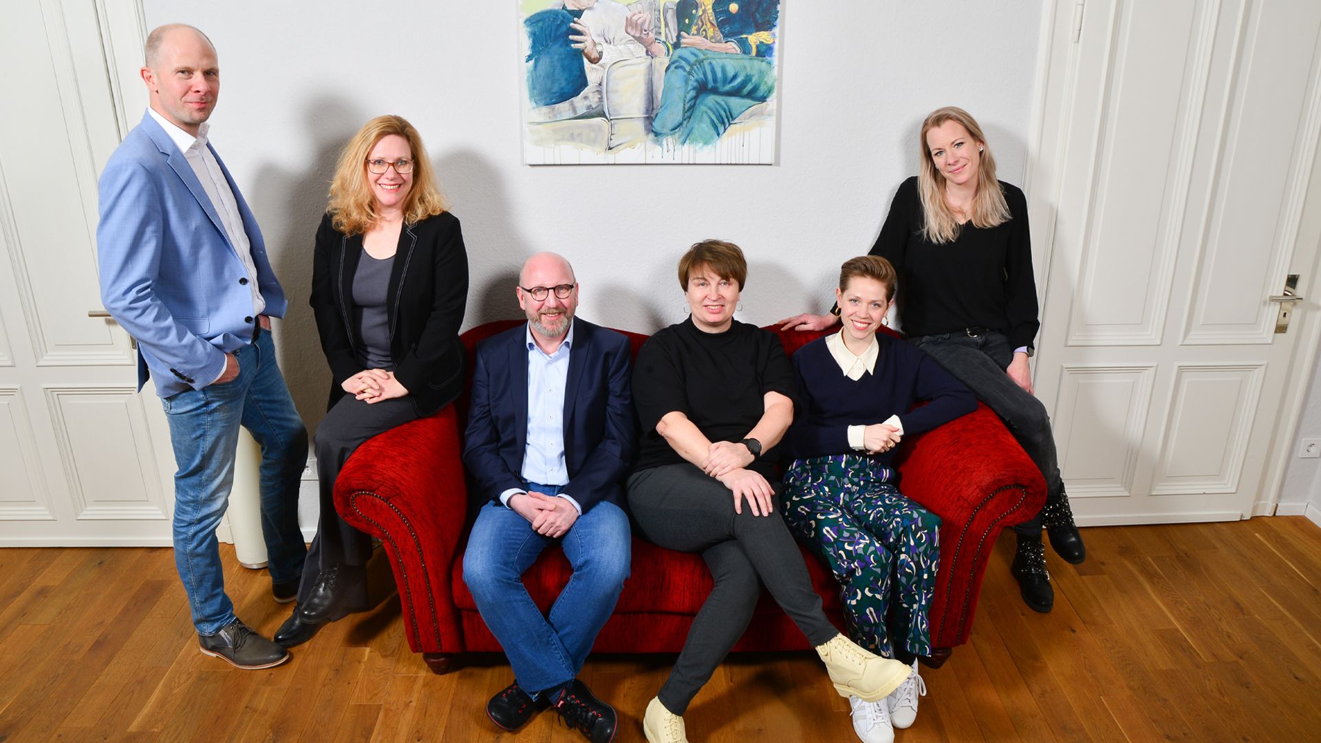 Verbände wie die Deutsche Gesellschaft für Verbandsmanagement sind spannende Arbeitgeber mit Teams, die Spaß am Job haben und an Jimi Hendrix, v.l.n.r.: Andreas Korte, Karen Scarbatta, Alex Frede, Jutta Gnauck, Dorothea Stock und Denise Werner. Foto: DGVM