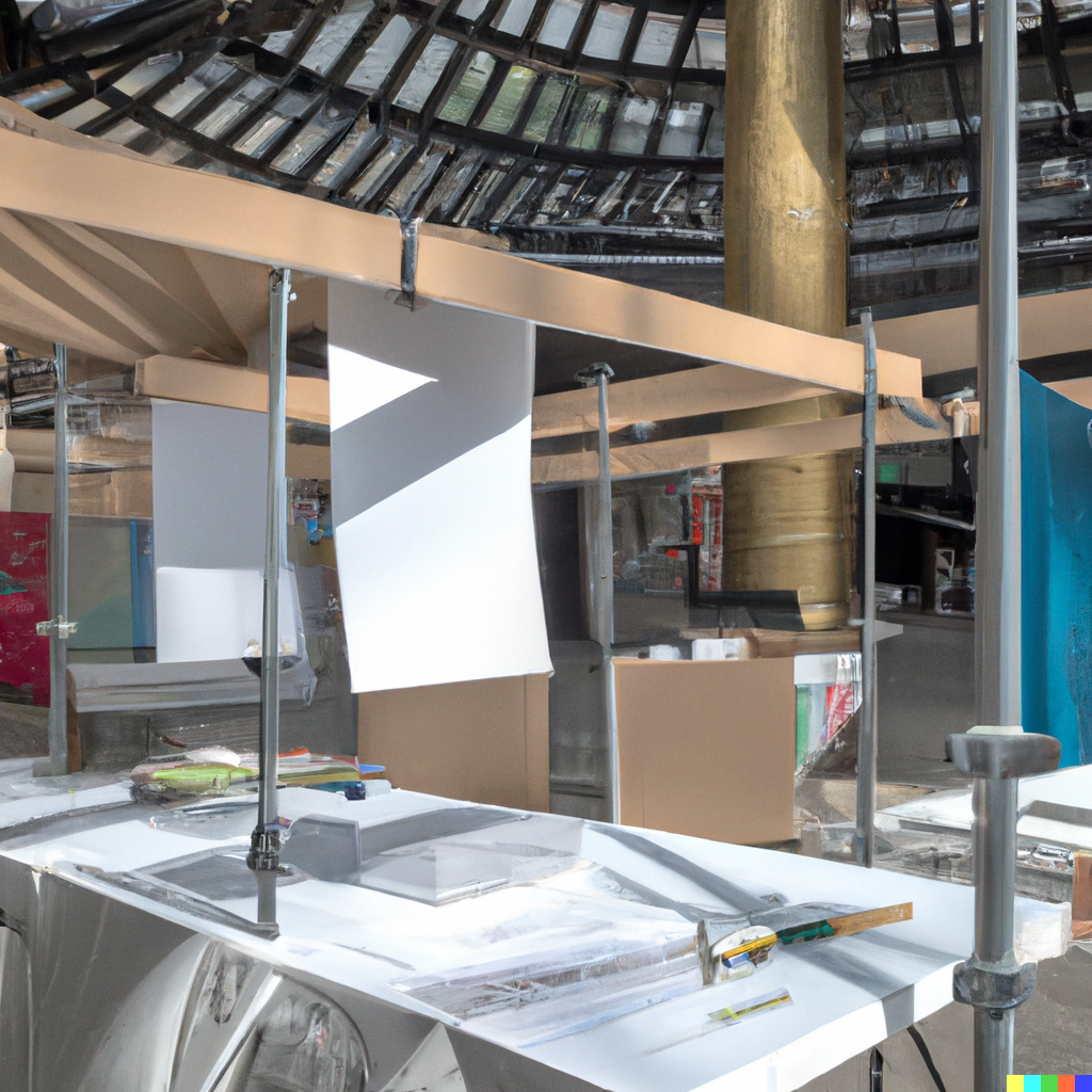 Ein Messestand nach dem Prinzip der Kreislaufwirtschaft – wie sieht der aus? Foto: DALL E, ein KI-System, das anhand einer Beschreibung Bilder erstellt. Eingabefehl: Outline an exhibition stand according to the circular economy.