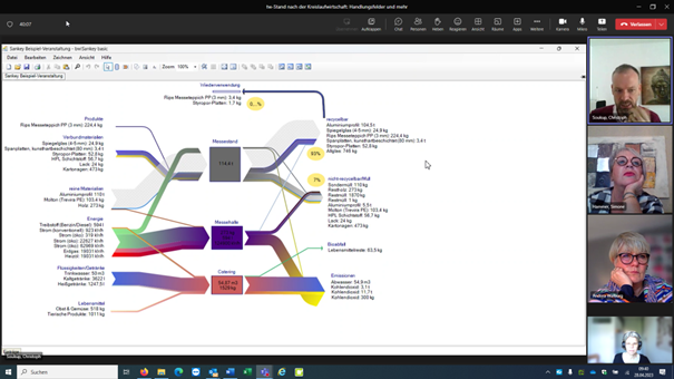Kreislaufexperte Dr. Christoph Soukup beschreibt das Stoffstrombild einer Beispielveranstaltung. Foto: Sreenshot