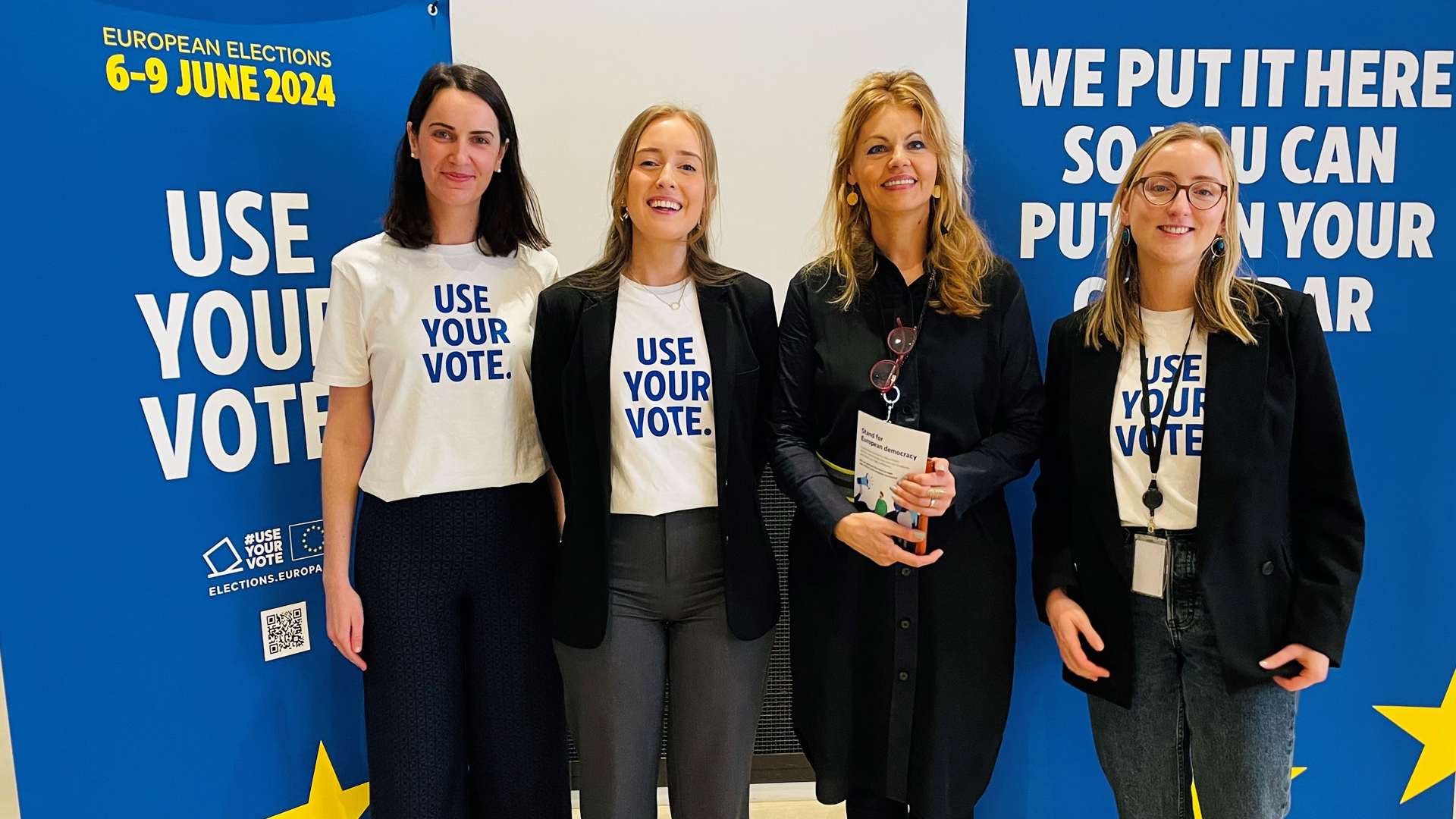 Die Initiative „Use your vote“ schafft Aufmerksamkeit für die Europawahlen 2024. Sie stellt ein Toolkit bereit, damit wir alle für die Wahlen werben und für Demokratie eintreten können, und sucht das Gespräch auf Veranstaltungen wie dem EU Dialogue.