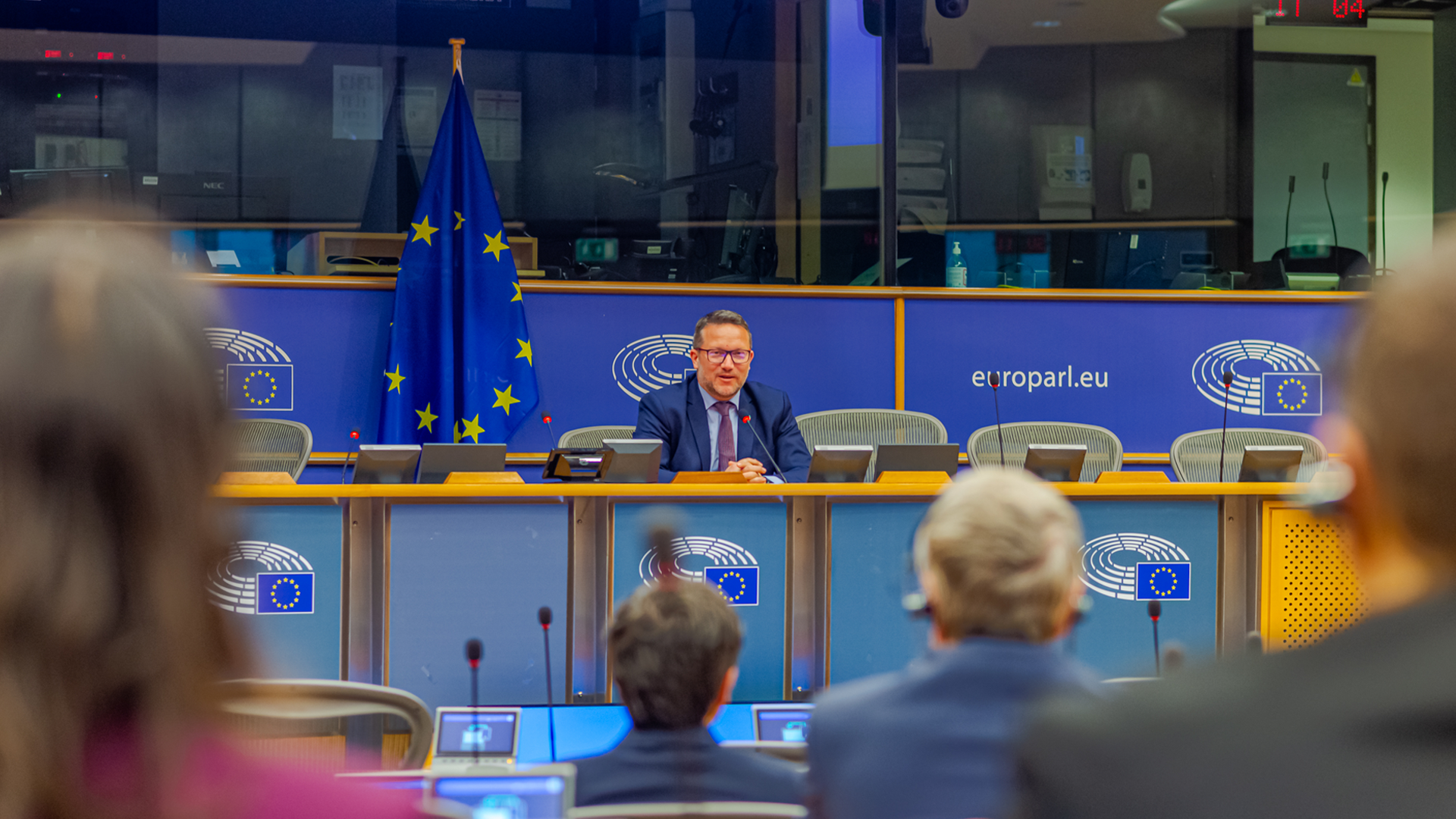 Parlamentsmitglied Istvan Ujhelyi aus dem Committee Transport and Tourism empfängt die Delegierten der Meetingwirtschaft im Europäischen Parlament und spricht beim EU Dialogue. Foto: visit.brussels, Jean-Paul Remy