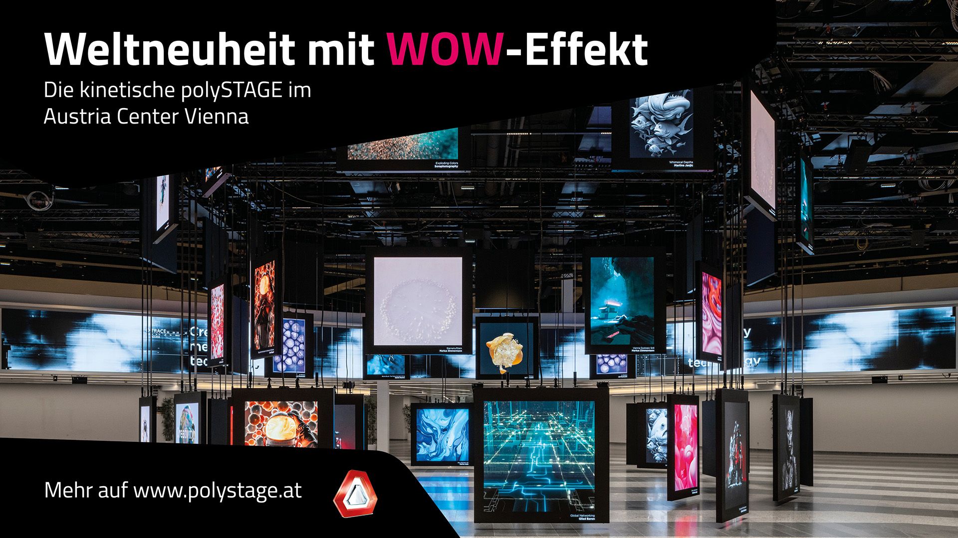 Das Austria Center liegt in der Donau City direkt neben dem UNO-Hauptquartier. Ende letzten Jahres wurde hier die polySTAGE vorgestellt. Eine innovative Festinstallation aus 52 LED-Modulen, die individuell eingestellt werden können. Kürzlich gewann das Austria Center den Stevie Award aus Deutschland und wurde zur besten Event-Location Österreichs beim Austrian Event Award gekürt. Philip Ulamec, Sales Manager Corporates Europa beim Austria Center, erzählt ehrlich, dass das Team gerade erst lernt, was alles mit der polySTAGE möglich ist.