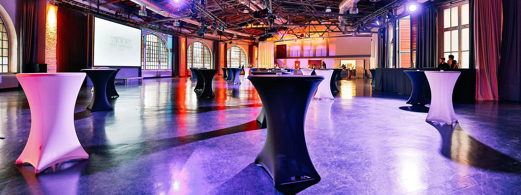 Die Alte Lokhalle hat ihre neue Bestimmung als Eventlocation gefunden. Die lichtdurchfluteten Räumlichkeiten lassen sich durch flexible Trennwände individuell anpassen. Moderne Veranstaltungstechnik und ein großes Außenareal lassen jegliche Art von Event zu, selbst wenn Flächen für aufwendige Auto-Präsentationen benötigt werden oder gar ein Indoor-Feuerwerk abgefackelt werden soll.