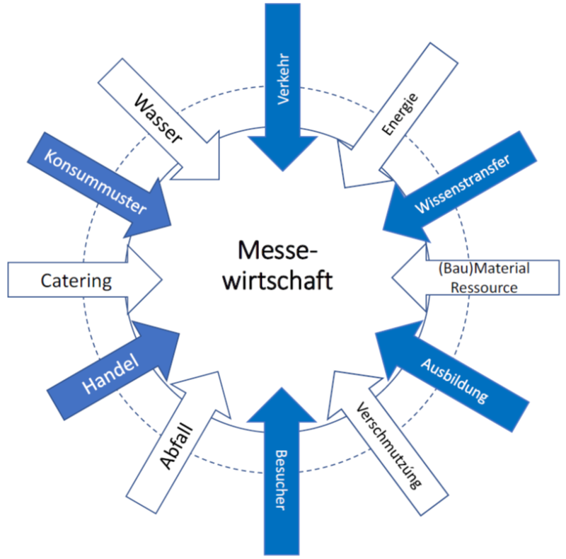 Every year, Germany is home to 350 to 380 international, national and regional trade fairs with around 16 million visitors. This generates waste and emissions at the 70 exhibition centres in Germany, which poses a major challenge. The tightly synchronised trade fair cycles make it difficult to separate waste and recycle it. It is estimated that only one per cent of recyclable materials are returned to material cycles after the trade fair.