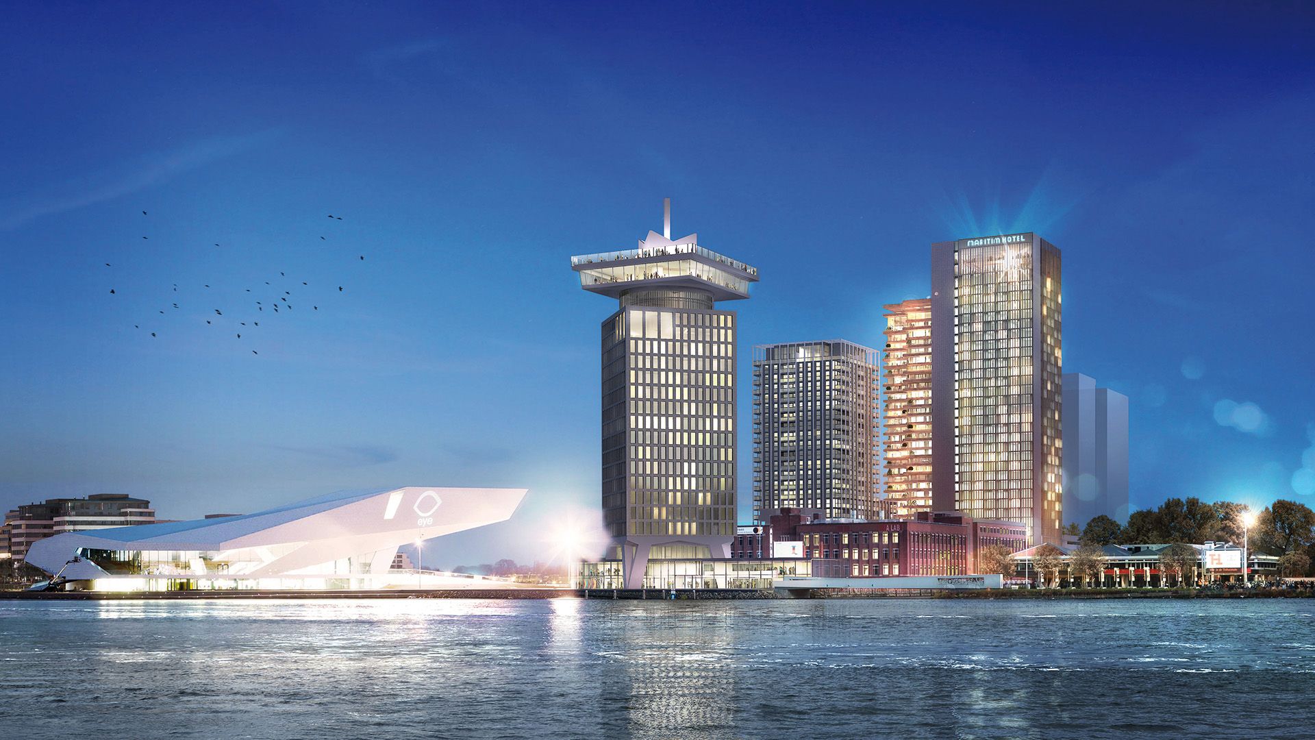 After construction delays, the Maritim Hotel Amsterdam is opening this year. It offers 579 rooms and suites as well as a sky bar and an adjoining congress centre with 18 halls for more than 4,400 participants. Photo: Team V Architecture, a visualisation by Zwartlicht