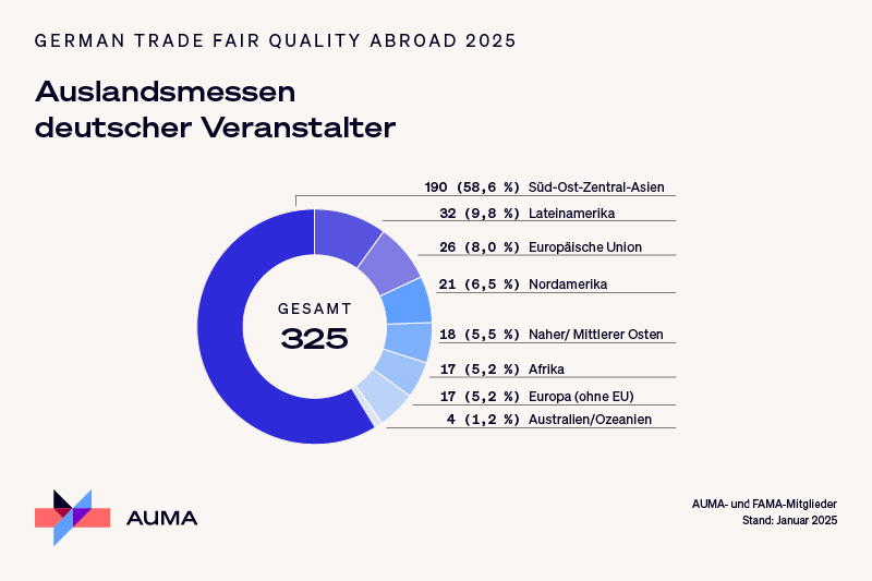 Dealing with these challenges requires trade fair organizers to conduct precise market analyses, engage in strategic portfolio management, and remain willing to adapt business models to changing market conditions. There are always opportunities to do so, even—or especially—in a multipolar world where power dynamics are shifting, and international trade regulations, including visa policies and sustainability guidelines, are being reorganized. International expansion seems to be a strategic priority for German trade fair companies. According to a recent survey by the Association of the German Trade Fair Industry (AUMA), they are planning a total of 325 trade fairs in nearly 40 countries this year—significantly more than in the previous two years, and even more than within Germany itself.