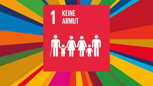 Das Sustainable Development Goal 1 (SDG 1) steht für "Keine Armut". Grafik: 2023 Engagement Global
