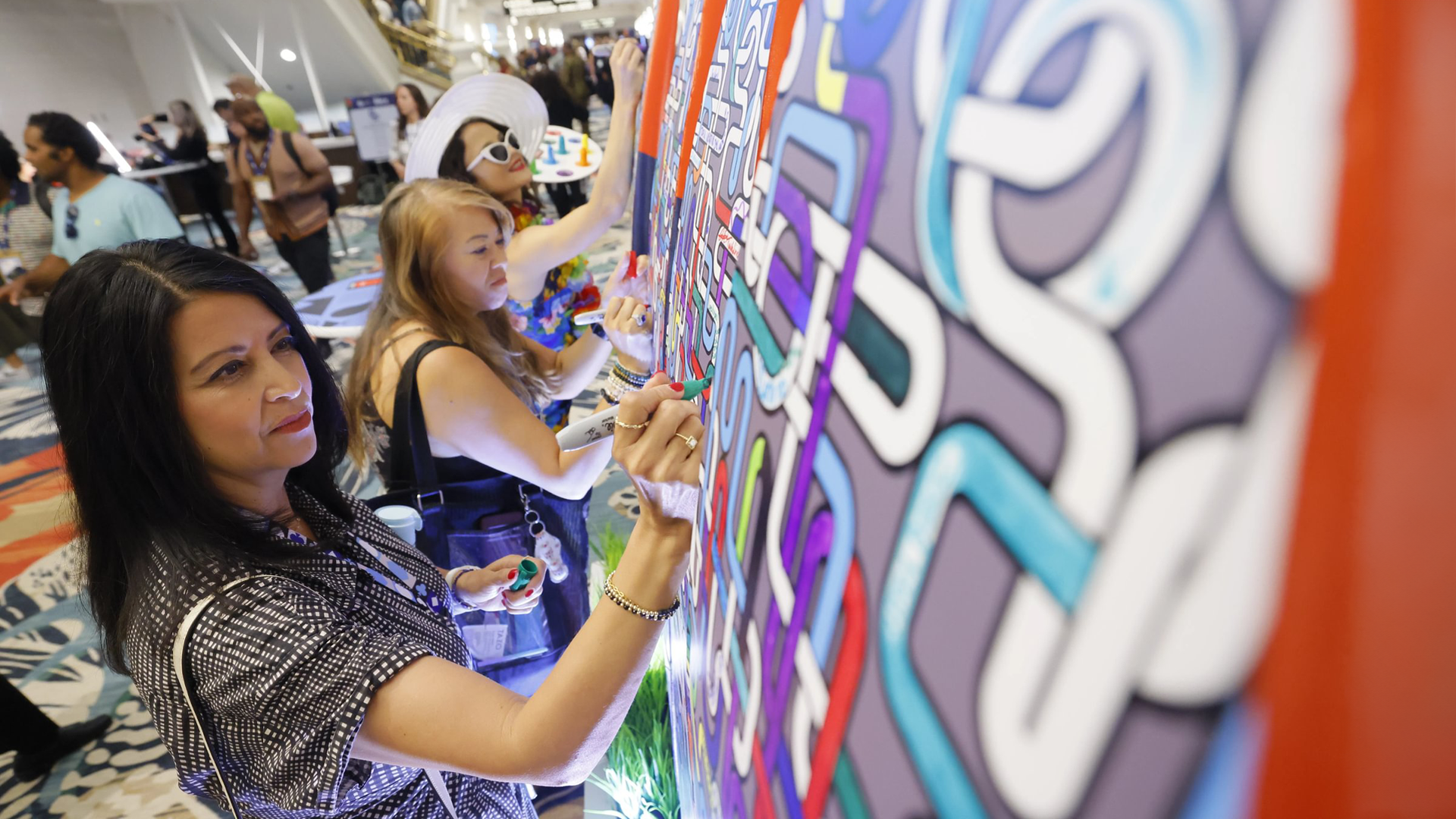 Die IMEX America 2024 bietet viele Aktivierungen, welche die Teilnehmer inspirieren und erfreuen sollen. Dazu gehört ein groß angelegtes Malen nach Zahlen, bei dem die Besucher gemeinsam ein Wandbild erstellen. Foto: IMEX Group