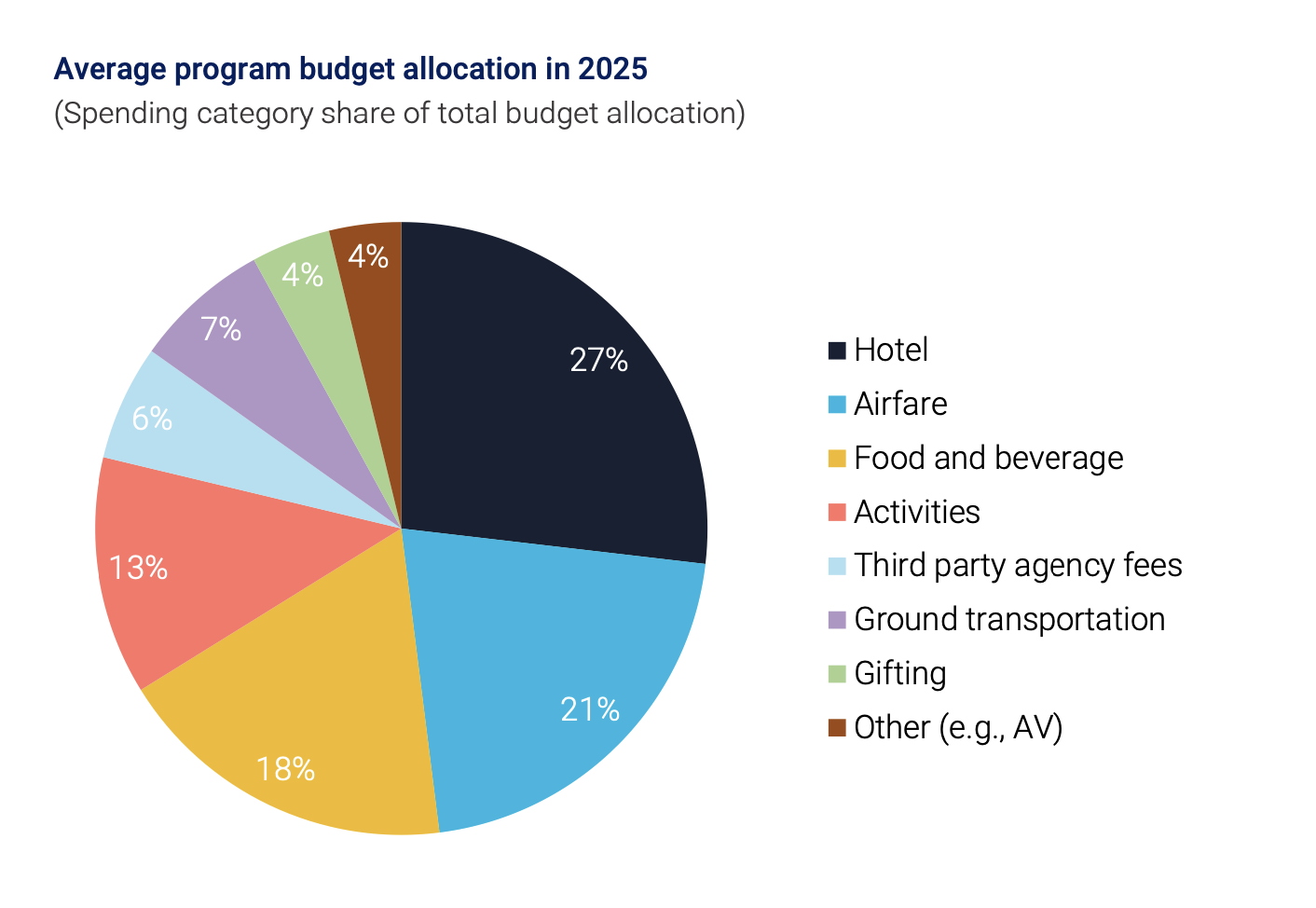 Der Incentive Travel Index (ITI) der Incentive Research Foundation (IRF) und der Society for Incentive Travel Excellence (SITE) zeigt, in welchen Bereichen Kosten anfallen und welchen Anteil sie haben. Bild: ITI