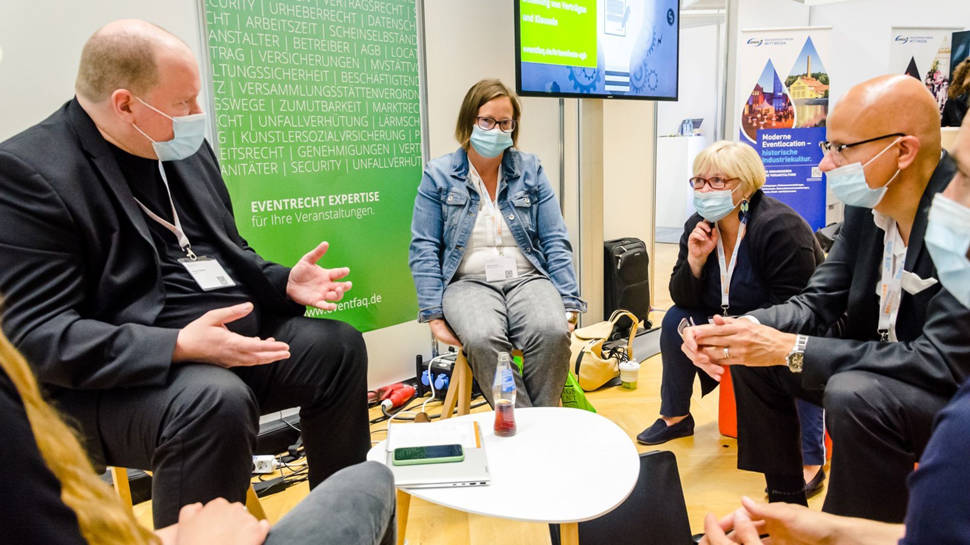 Rechtsanwalt Thomas Waetke ist in der Pandemie gefragt. Hier beantwortet er den Besuchern der Locations Mitteldeutschland Fragen zum Eventrecht. Nächste Gelegenheit ist die Locations München am 14. Oktober 2021. Foto: Capricorn Events, Christian Meyer