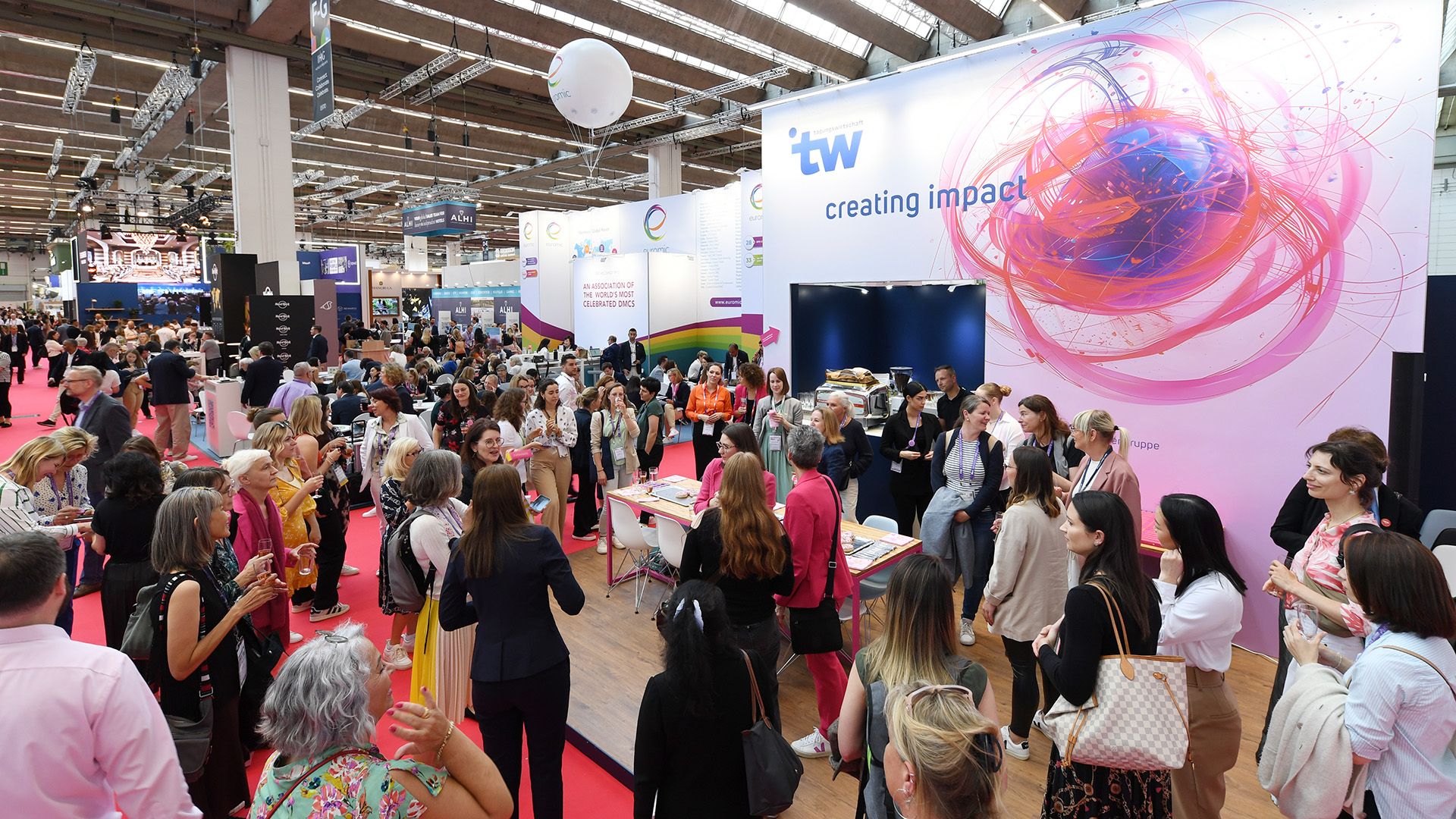 Bei der CO2-Bilanz des Messestands der tw tagungswirtschaft auf der IMEX 2024 in Halle 8 der Messe Frankfurt werden auch die An- und Abreisen der Besucher:innen betrachtet. Das entspricht dem Scope 3 des Greenhouse Gas Protocols. Foto: IMEX Group