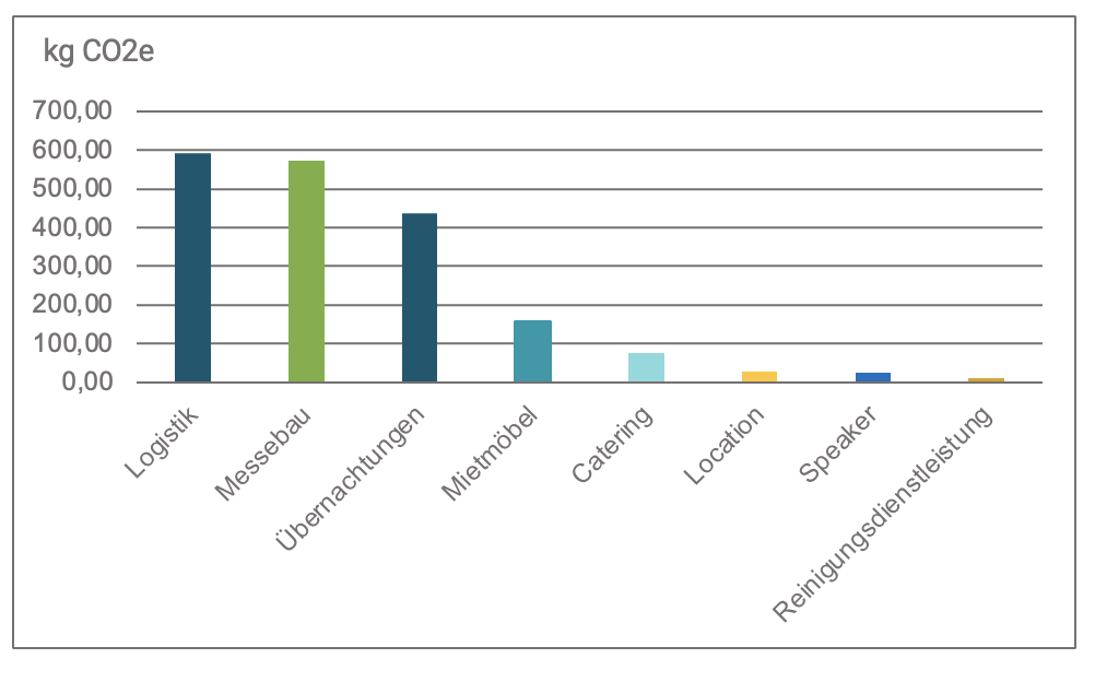 Grafik 2: CO2e-Emissionen in kg ohne An- und Abreise der Besucher:innen des tw-Messestandes, Darstellung: 2bdifferent
