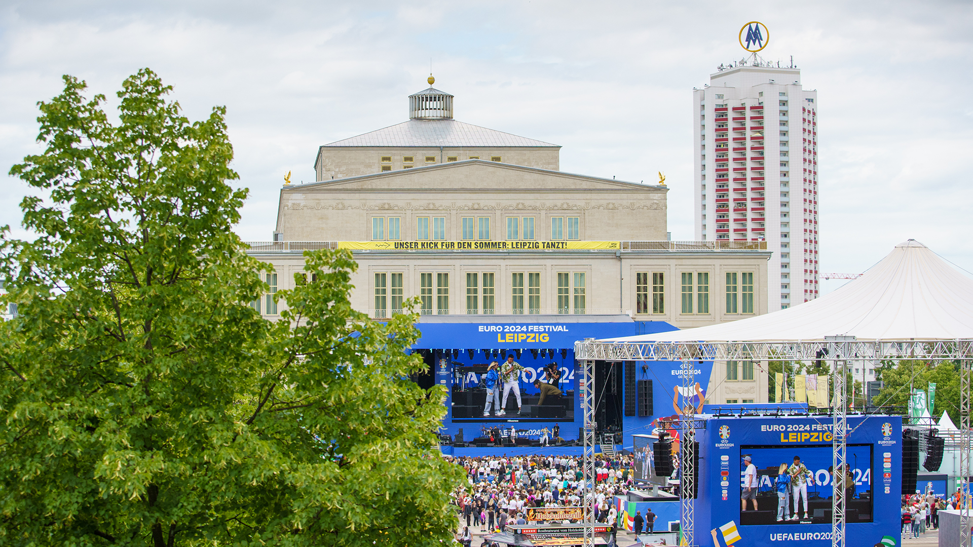 In Fan Zones wie in Leipzig kamen tausenden Menschen zur UEFA EURO 2024 zusammen, um gemeinsam Fußball zu schauen. So wurden die Partien auch außerhalb der Stadien im öffentlichen Raum erlebbar. Foto: Leipziger Messe
